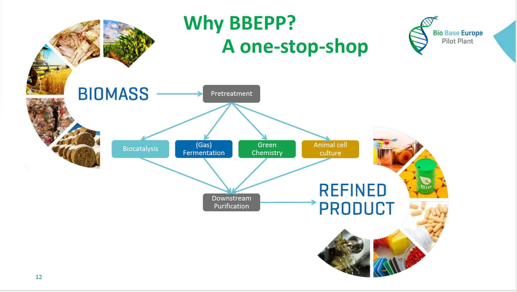 The presentation revolves around the biorefinery concept, with a particular focus on the utilization of aquatic biomass. It draws parallels between traditional oil refineries and biorefineries, highlighting the sustainable approach of using biomass as feedstock. Key Points: 1. Biorefinery Concept: Similar to traditional refineries, biorefineries process various forms of biomass instead of oil or fossil-based materials. This includes diverse sources of biomass, particularly underutilized aquatic biomass like algae. 2. Industrial Biotechnology (White Biotechnology): This field involves leveraging microorganisms or their components (such as bacteria, yeast, fungi) to produce industrial products, chemicals, materials, and fuels in a more sustainable manner than conventional chemical processes. 3. BBEPP – An Open Access Pilot Facility: The Bio Base Europe Pilot Plant (BBEPP) is presented as an independent open access pilot facility focusing on process development, scale-up, and custom manufacturing of bio-based products and processes. BBEPP helps bridge the lab-scale research to industrial production gap, known as the ‘valley of death’, by providing shared infrastructure to minimize risks and costs associated with scale-up. 4. Project CircAlgae: The presentation introduces the CircAlgae project, aiming to valorize industrial waste streams into high-value products and promote sustainable biorefineries in Europe. The project specifically targets underutilized biomass from aquatic sources to derive valuable ingredients for the food, feed, and cosmetics industries. 5. Technologies and Services: A range of technologies and services provided by BBEPP is showcased, including biocatalysis, fermentation, green chemistry, and more. The facility’s ability to convert various feedstocks, including aquatic biomass, into high-value products is emphasized. 6. Conclusion and Outreach: The presentation concludes by highlighting the facility’s contributions and inviting the audience to explore their YouTube channel for educational content about their work in biorefinery. In summary, the presentation sheds light on the potential of biorefineries to convert biomass, especially from aquatic sources, into a wide array of sustainable and high-value products. Facilities like BBEPP are instrumental in scaling up biotechnological innovations, fostering a more sustainable and bio-based economy.