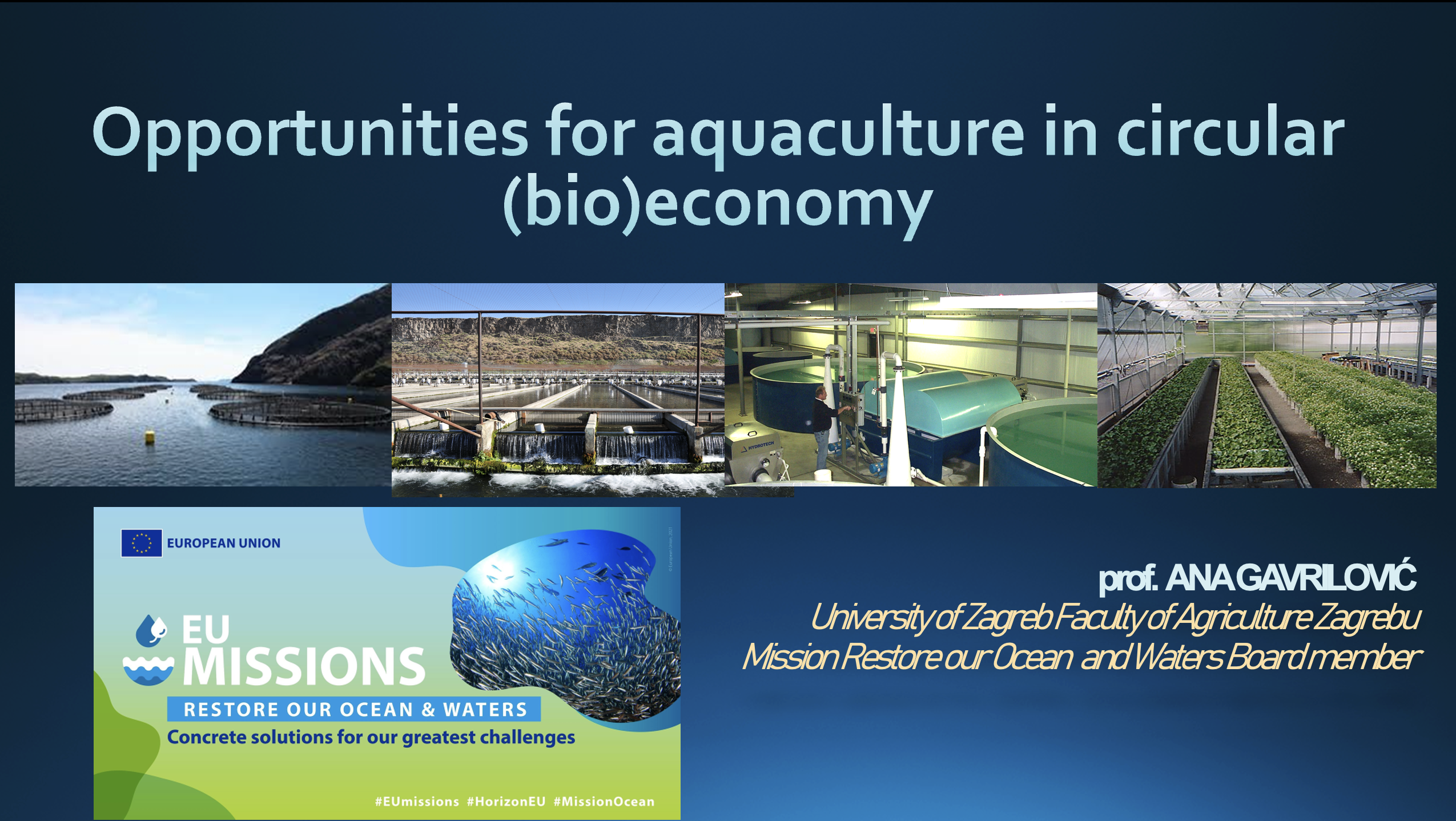 The presentation delves into the integration of aquaculture within the European Union’s circular economy and bioeconomy strategies. It is meticulously structured around EU policies and their influence on funding opportunities for sustainable aquaculture practices. Key Points: 1. EU Missions and Policies: The presentation introduces five EU missions dedicated to providing tangible solutions by 2030, encompassing missions centered on restoring oceans and waters, adapting to climate change, and realizing a climate-neutral and smart city. The significance of these missions in molding project calls and funding opportunities is emphasized. 2. Aquaculture’s Significance: The rapid expansion of aquaculture, recognized as the fastest-growing food production sector, is highlighted. The challenges accompanying this growth, such as water and land limitations, environmental impacts, and the necessity for technological innovations in farming, are underscored. 3. Sustainable Aquaculture Practices: The presentation underscores the criticality of sustainable practices in aquaculture, discussing various production methods, including traditional technologies, recirculating aquaculture systems (RAS), and aquaponics, which synergize fish farming with plant cultivation. 4. Aquaculture in the Circular Economy: Details on how aquaculture waste can be repurposed in a circular economy are provided, showcasing the conversion of waste into valuable by-products, such as biogas or compost. The potential for harnessing aquaculture wastewater for algae cultivation, further enhancing sustainability, is also suggested. 5. EU Funding Opportunities: Resources and links are furnished, guiding participants to explore EU funding avenues related to aquaculture and the circular economy. The formation of partnerships and consortia to capitalize on these opportunities is encouraged. 6. Engagement with EU Missions: Insights on how stakeholders can actively participate in EU missions, endorse mission charters, and partake in cross-basin projects to tackle challenges associated with oceans, waters, and climate change are shared. The presentation maps out the synergy of aquaculture with the EU’s circular economy and bioeconomy strategies. It accentuates the sector’s growth, its sustainability challenges, and prospective remedies, alongside offering valuable resources for stakeholders keen on accessing EU funding and support for sustainable aquaculture initiatives.