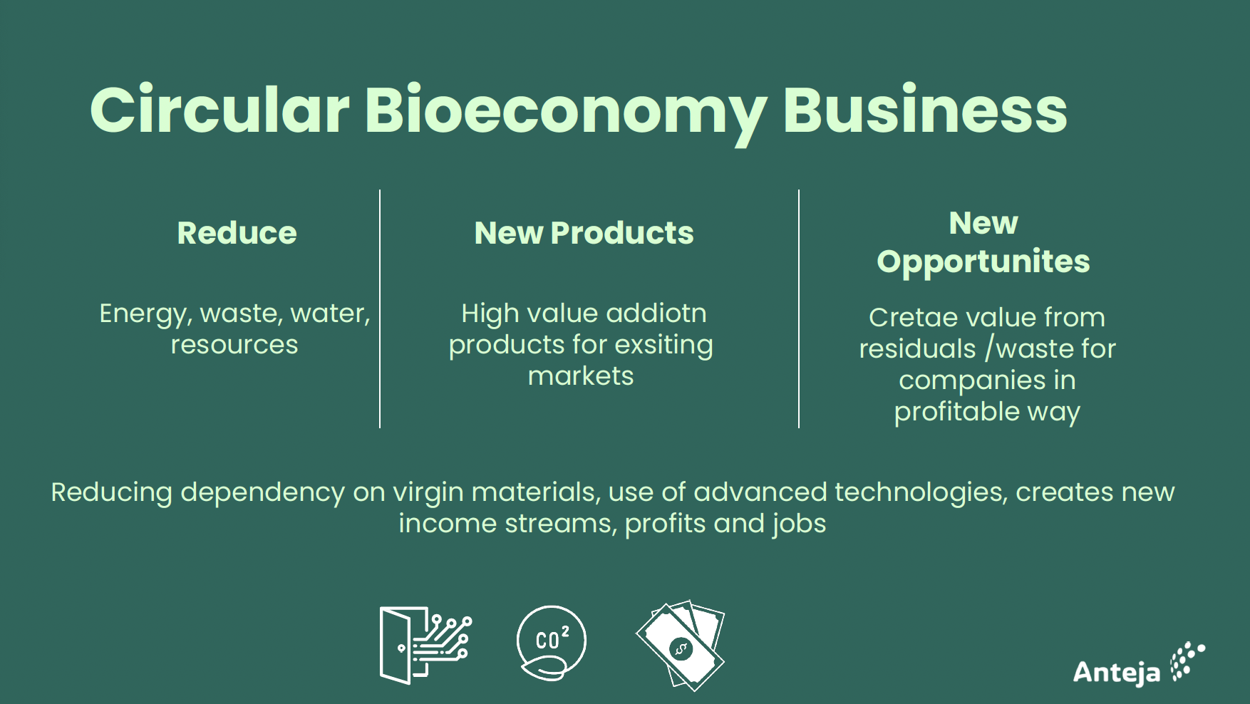 The presentation delivers insights into the circular bioeconomy from a business perspective, emphasizing the importance of transforming current economic systems into more sustainable and environmentally friendly models. It highlights the need to reduce dependency on virgin material, utilize advanced technologies, and create new income streams and profits within companies. Key Points: 1. Global Environmental Impact: The presentation starts with a stark reminder of the global environmental impact caused by wasteful practices, particularly in the extraction of virgin biomass and food waste. It highlights the adverse effects these practices have on marine life and people in non-European countries, emphasizing the need for a more sustainable approach. 2. Circular Bioeconomy: The concept of a circular bioeconomy is introduced, focusing on reducing waste and energy consumption and repurposing biogenic resources like bioresidues, byproducts, and biowaste. The goal is to create new products for existing markets, such as the high-value applications in pharma, chemical, food, and packaging industries. 3. Challenges in Europe: Despite having the technologies and opportunities, the presentation notes that Europe is moving slowly in adopting a more sustainable circular bioeconomy. Challenges include administrative burdens, limited funding opportunities for market-level technologies, and the tendency for technologies developed in Europe to be deployed outside of Europe. 4. Opportunities and Partnerships: To address these challenges, the presentation suggests creating new partnerships and pushing for the implementation of sustainable technologies within European countries. It introduces the Interreg InnoBioVC Project, which aims to deploy new funding schemes supporting the deployment of technologies for high-value bioproducts. 5. Integrated Value Chain Generator: The project will integrate an integrated value chain generator and a sustainability assessment tool to help investors, bankers, and other stakeholders understand the profitability, return on investment, and positive environmental impact of green and circular projects. 6. Engagement and Collaboration: The presentation calls for engagement with various stakeholders, including banks, ministries, funding agencies, clusters, suppliers, buyers, and technology providers. It emphasizes that impactful partnerships are crucial for taking sustainable technologies to the market. The presentation stresses the urgency of transitioning to a circular bioeconomy, leveraging advanced technologies, and fostering collaborations to ensure a sustainable and profitable future for businesses and the environment alike. It highlights the need for systemic change and the role of strategic partnerships in driving this transformation.