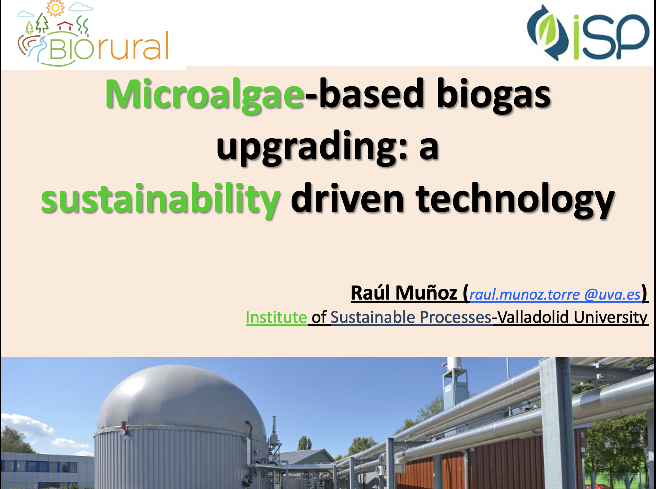 The presentation delves into the potential of microalgae-bacteria processes in purifying biogas and transforming it into biomethane, highlighting the significant global and particularly European interest in biogas production. It underscores the need for innovative and environmentally friendly technologies, especially for small to medium-scale plants. Key Points: 1. Biogas Production Trends: The presentation provides an overview of the global and European biogas production landscape, noting the increase in biogas plants and the volume of biomethane produced. It references advancements in purification technologies, including membrane separation and pressure swing adsorption. 2. Technology for Biogas Purification: The technology introduced involves microalgae-bacteria processes where biogas, primarily composed of methane and carbon dioxide, is fed into a photobioreactor. The carbon dioxide is fixed by microalgae, resulting in oxygen production, which bacteria utilize to oxidize hydrogen sulfide into elemental sulfur. This process yields purified biomethane and algae biomass, which may be used as bioenergy feedstock or biofertilizer. 3. Operational Parameters and Scalability: Key operational parameters like the liquid-to-gas ratio and pH are discussed. The presentation describes the technology’s scalability from laboratory scale to semi-industrial scale, highlighting its efficiency in nutrient recovery and robustness. 4. Environmental and Economic Benefits: It points out the environmental advantages, such as lower energy consumption and reduced greenhouse gas emissions compared to conventional methods. The potential economic benefits due to lower operational costs are also highlighted. 5. Future Perspectives: The presentation concludes by focusing on the promising future of microalgae-bacteria processes in biogas purification, suggesting that with further refinement, this technology can offer a sustainable and economically viable solution for biogas purification across various scales. The presentation provides insight into the innovative use of microalgae-bacteria processes for biogas purification, showcasing the technology’s environmental benefits and promising economic prospects, marking a significant stride towards sustainable and efficient energy production.